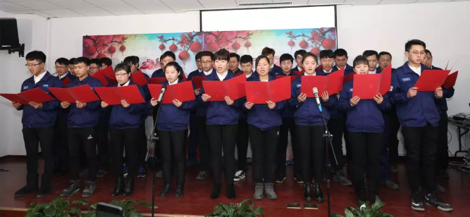 2018年01月12日,煙臺金正環保全體員工近200人在二樓多功能廳舉辦2017年終總結暨2018迎新聯歡會。