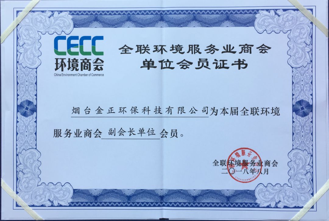 煙臺金正環保科技有限公司于2018年8月27日,在同一天獲得“山東省碟管式反滲透膜工程實驗室”認定并被評為“全國工商聯環境服務業副會長”單位。