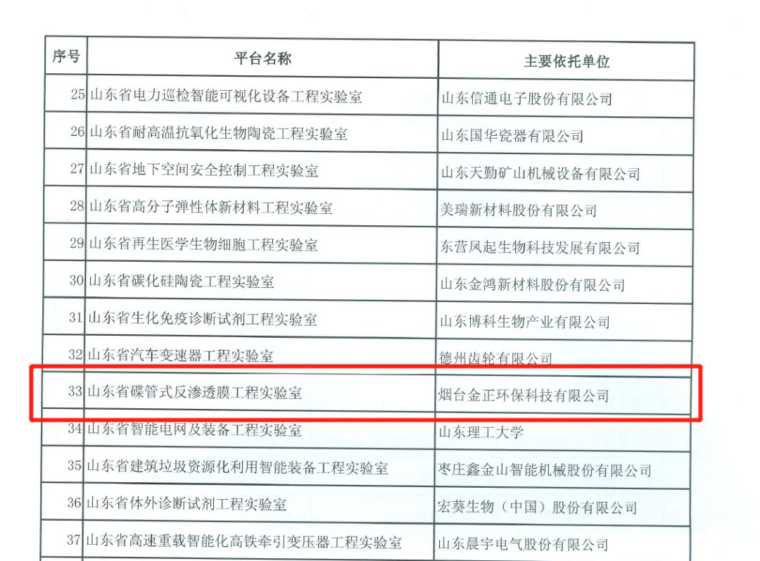 喜訊連連丨金正環保獲得“山東省碟管式反滲透膜工程實驗室”認定