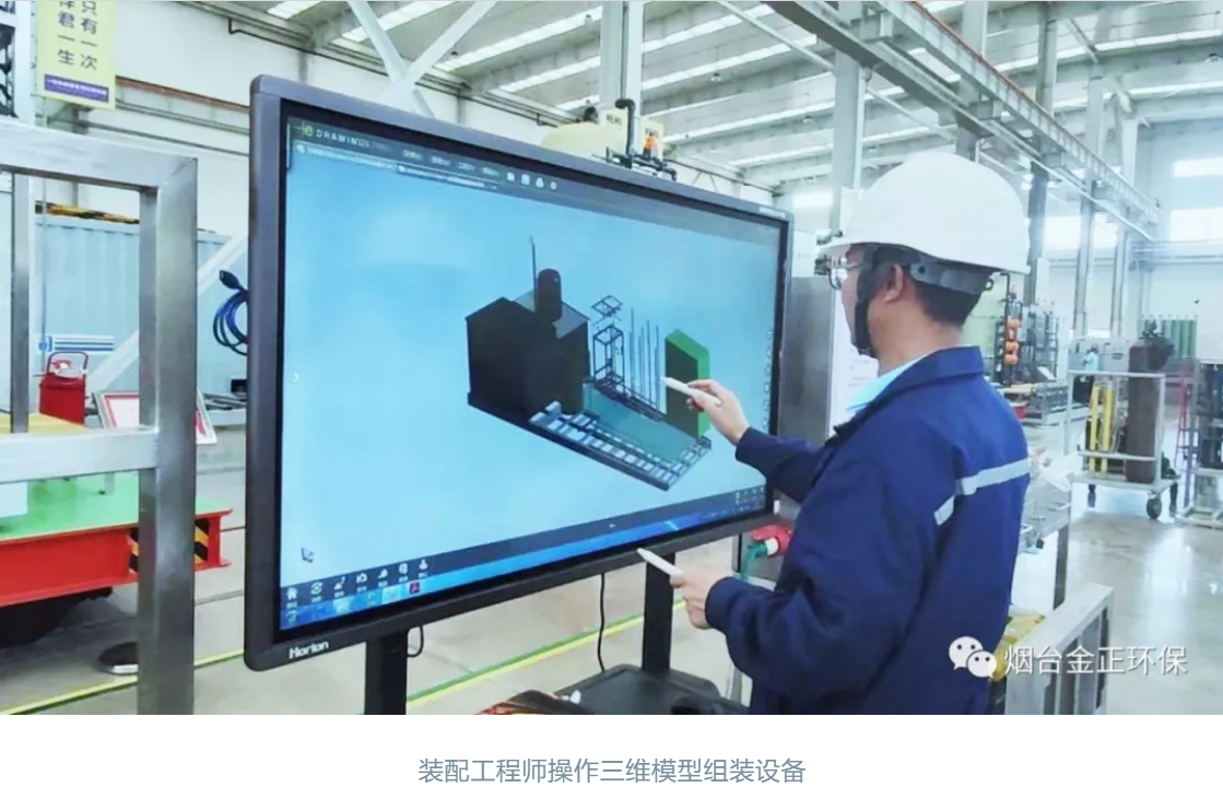 自動化生產線制造出的DTRO膜組件,隨后將運往膜設備裝配車間進行組裝。在這個現(xiàn)代化裝配車間,看不到一張圖紙,裝配工程師完全憑借電腦屏幕上顯示的三維模型來組裝設備。這是公司自主研發(fā)的設備智能組裝管理系統(tǒng),創(chuàng)新打造的無紙化、可視化、智能化的裝配場景和“搭積木”式裝配流程,其操作簡單直觀,數(shù)據傳遞及時,溝通高效準確,有效提高了設備標準化組裝精度,大幅縮短了生產周期,實現(xiàn)技術、設計、生產、計劃等部門的協(xié)同管理。