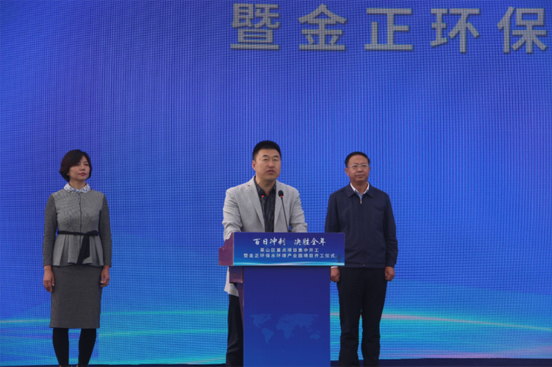在致辭中,李越彪總裁對出席儀式的領導和嘉賓表示熱烈歡迎,對關心支持公司發展的領導和朋友表示衷心感謝。在產業園審批、籌建過程中,煙臺市委、市政府高度重視、大力支持,給予了強有力的扶持政策。萊山區委、區政府成立工作專班,深入一線服務辦公,現場協調解決問題,有力推動了項目落地、開工建設。這一系列惠企舉措,更加堅定了企業發展的信心、做強的決心。金正環保將進一步堅定信心、再接再厲,以更寬的視野、更高的要求、更嚴的標準、更實的舉措,推動項目快馬加鞭,爭取早日投產見效,打破國外壟斷,填補國內空白,為助推全市新舊動能轉換、水環境改善做出應有貢獻。金正環保也將以實際行動,履行社會責任,做有擔當有溫度的“陽光企業”。