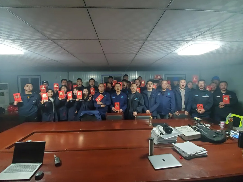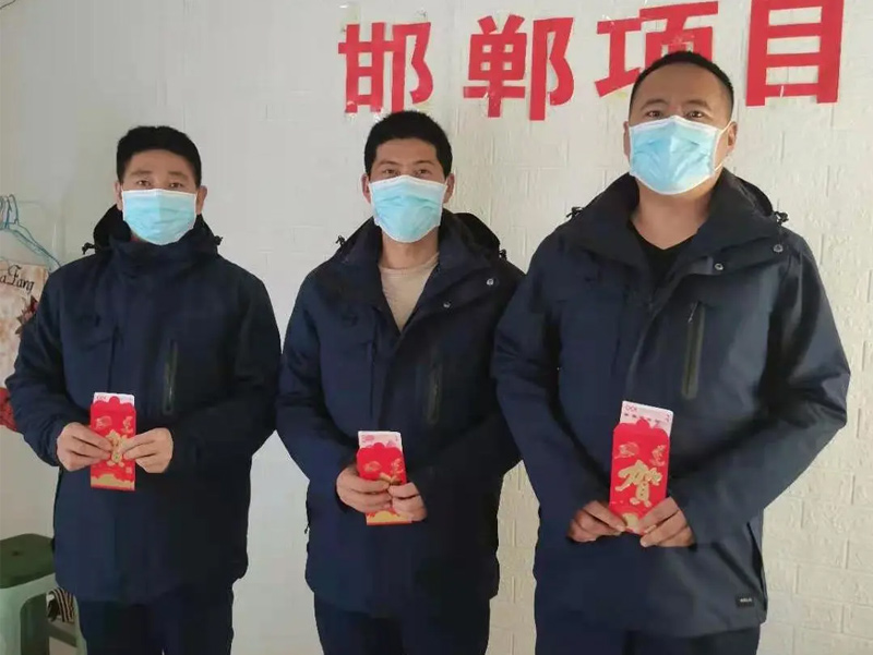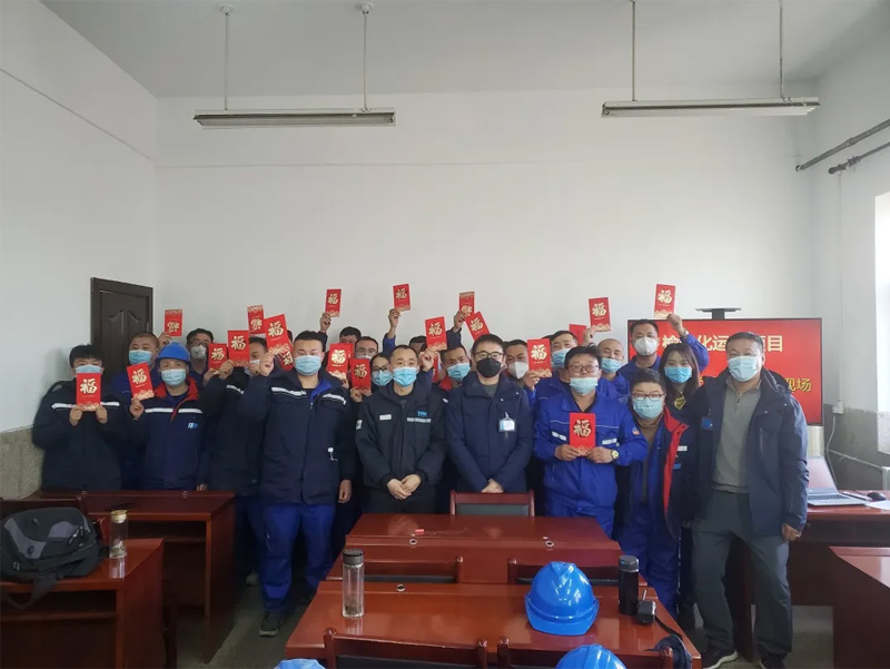 “堅守在一線的你們辛苦了!祝大家新春快樂!”2月8日,公司101會議室溫暖如春,一句句暖心的問候和祝福,穿越千山萬水,隔空傳遞著。受疫情影響,為減少人員流動,公司總裁李越彪先生和執行副總裁傅進玉先生以視頻連線的方式對袁大灘、邯鄲、安丘、榆能化、眉山五個堅守項目現場的一線員工進行慰問。