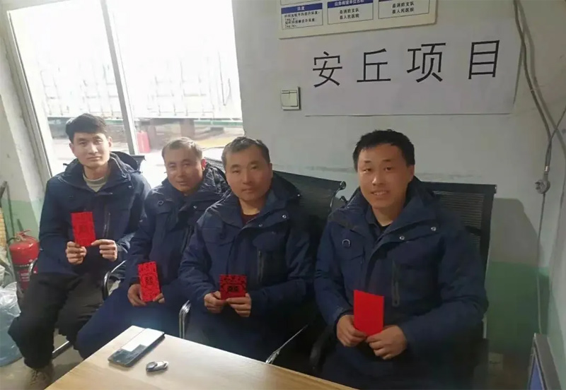 除夕,萬家團圓之際,金正環保各部門、各項目現場依然有人奮戰在工作崗位上,放棄了與家人團聚的歡聚機會,默默的奉獻服務,保證工作順利有序開展,公司執行副總裁傅進玉、運營副總裁馬世虎、管理副總裁于萍等領導帶隊,向堅守在項目現場和公司各崗位值班人員送去了節日問候和紅包。