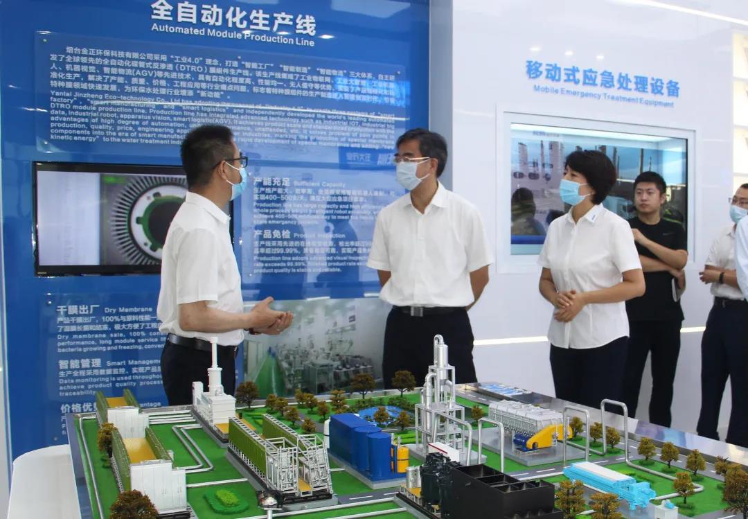曾贊榮副省長一行先后參觀了煙臺金正環(huán)保公司展廳、全自動化生產(chǎn)線和設(shè)備裝配車間,詳細了解產(chǎn)業(yè)布局、核心產(chǎn)品、核心技術(shù)、成本優(yōu)勢、智能制造、項目案例等情況。曾贊榮副省長對煙臺金正環(huán)保在水處理領(lǐng)域取得的成績給予充分肯定和認可,希望公司再接再厲,不斷加大研發(fā)力度,拓展新的業(yè)務(wù)領(lǐng)域,尤其能夠在鄉(xiāng)鎮(zhèn)和農(nóng)村污水治理領(lǐng)域形成突破,為農(nóng)村生態(tài)環(huán)境改善提供更多的新技術(shù)、新裝備,為保衛(wèi)祖國的綠水青山做出應(yīng)有的貢獻。