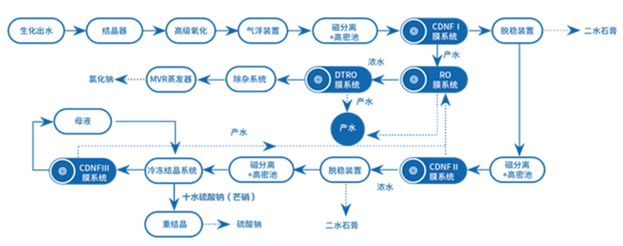 在某些工況下,采用“脫穩耦合平板膜”技術,減少加藥量,以更短的流程實現化工廢水的零排放,處理成本降低20%~30%。