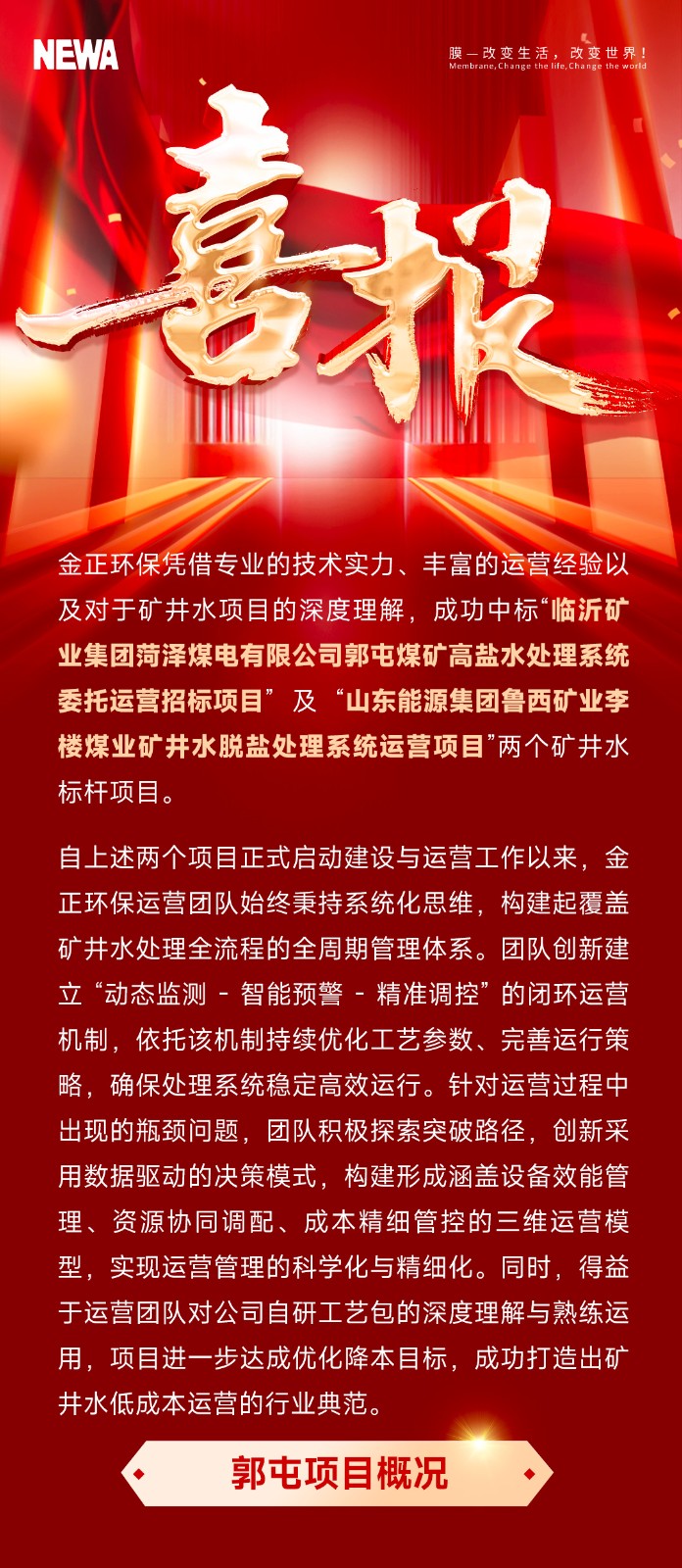 連續(xù)中標(biāo)丨煙臺(tái)金正環(huán)保深耕礦井水處理項(xiàng)目